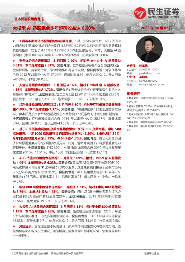 【民生证券】【20250407】基本面选股组合月报:大模型AI选股组合本年超额收益达6.60%-23页