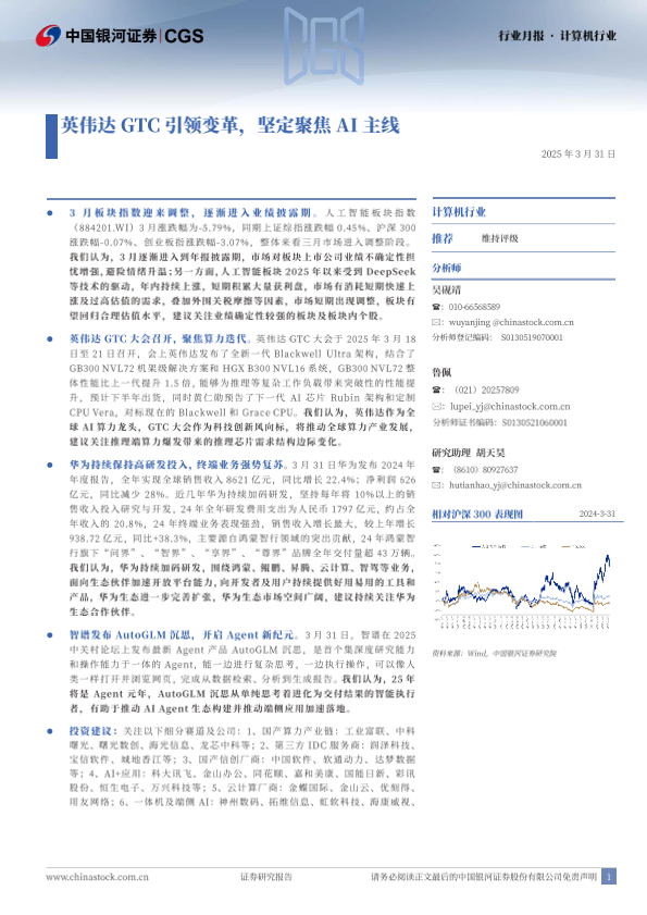 【银河证券】【20250331】计算机行业月报:英伟达GTC引领变革,坚定聚焦AI主线-32页