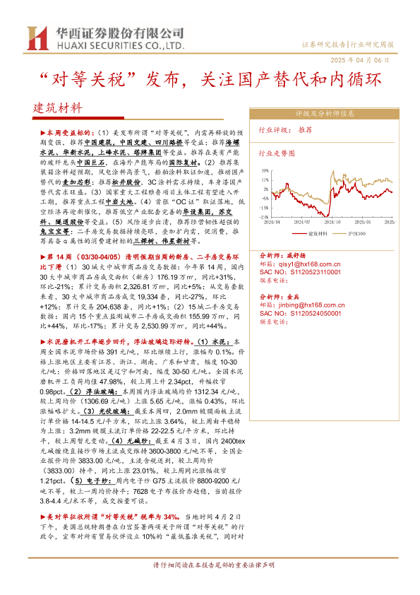 【华西证券】【20250406】建筑材料行业:“对等关税”发布,关注国产替代和内循环-22页