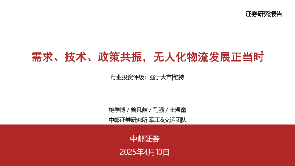 【中邮证券】【20250410】需求、技术、政策共振,无人化物流发展正当时-72页