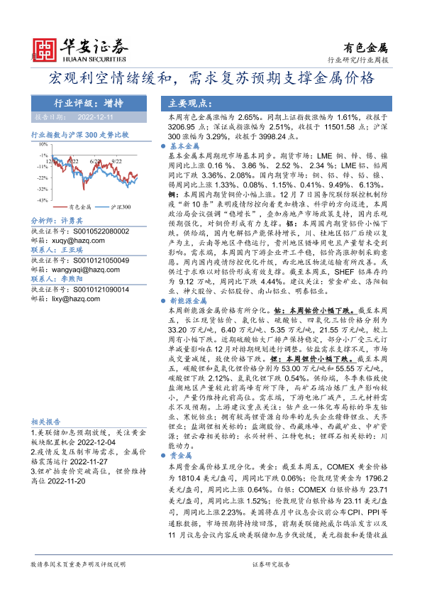 【华安证券】【20221211】有色金属行业周报:宏观利空情绪缓和,需求复苏预期支撑金属价格-17页