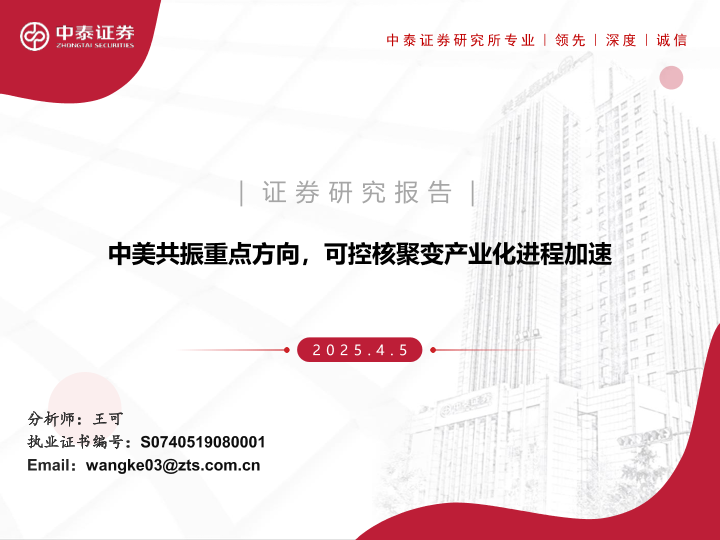 【中泰证券】【20250405】中美共振重点方向,可控核聚变产业化进程加速-38页