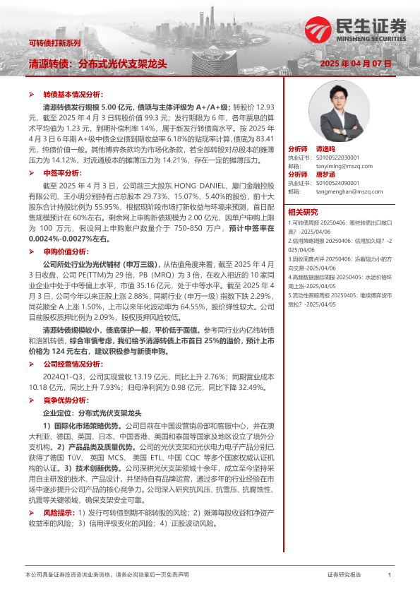 【民生证券】【20250407】可转债打新系列:清源转债-14页