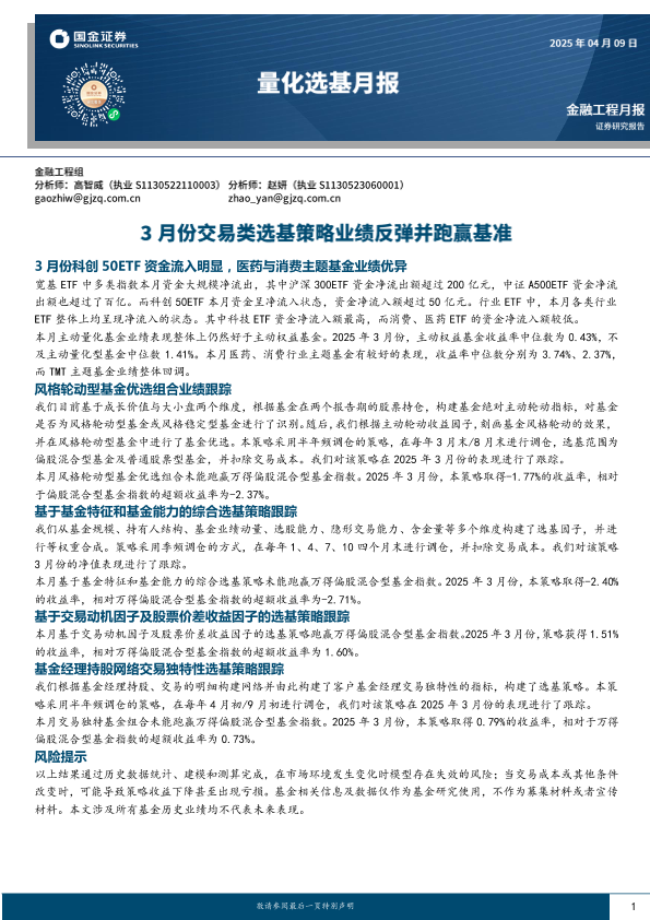 【国金证券】【202504】量化选基月报:3月份交易类选基策略业绩反弹并跑赢基准-13页