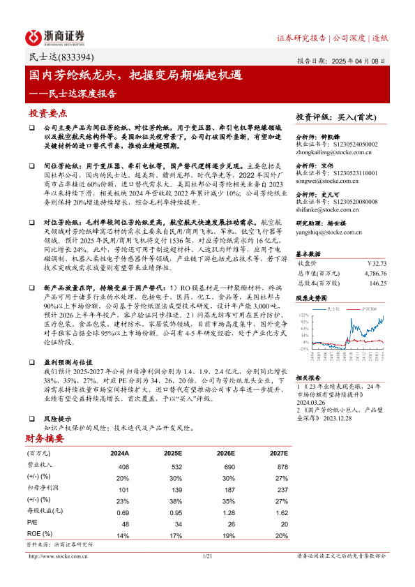 【浙商证券】【20250408】民士达(833394)深度报告:国内芳纶纸龙头,把握变局期崛起机遇-21页