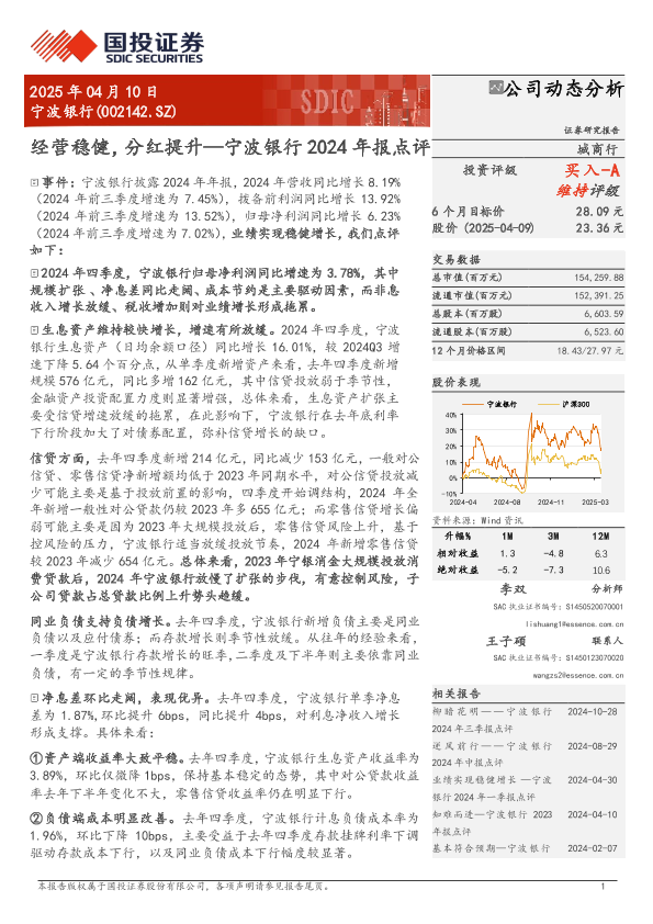 【国投证券】【20250410】宁波银行2024年报点评:经营稳健,分红提升-11页