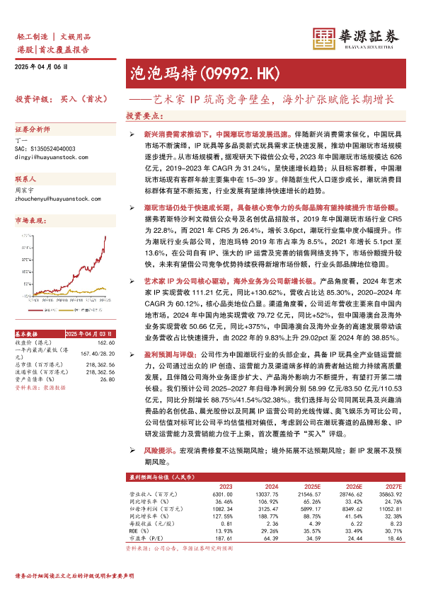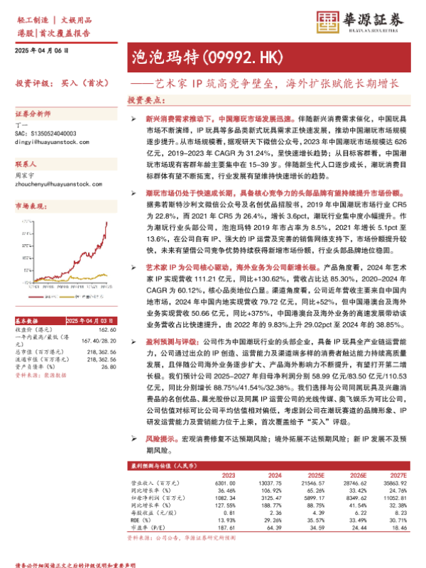 【华源证券】【20250406】泡泡玛特艺术家IP筑高竞争壁垒,海外扩张赋能长期增长-15页