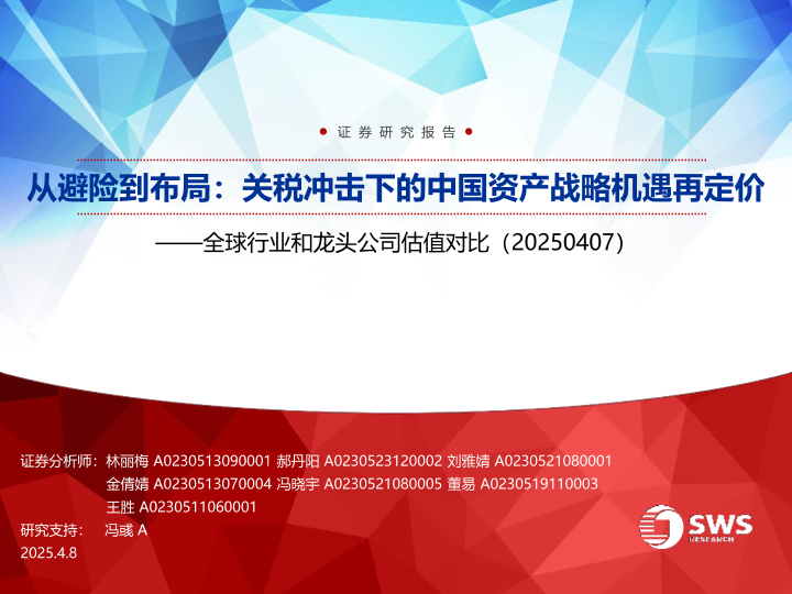 【申万宏源】【20250408】全球行业和龙头公司估值对比:从避险到布局,关税冲击下的中国资产战略机遇再定价-20页