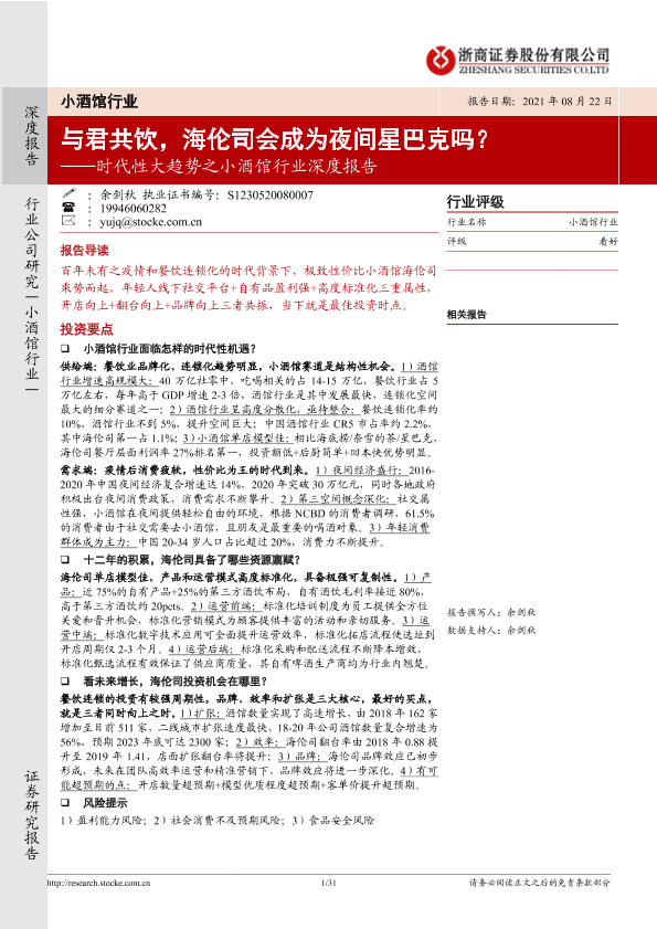 浙商证券 住宿餐饮 2021年 PDF 3.86 MB