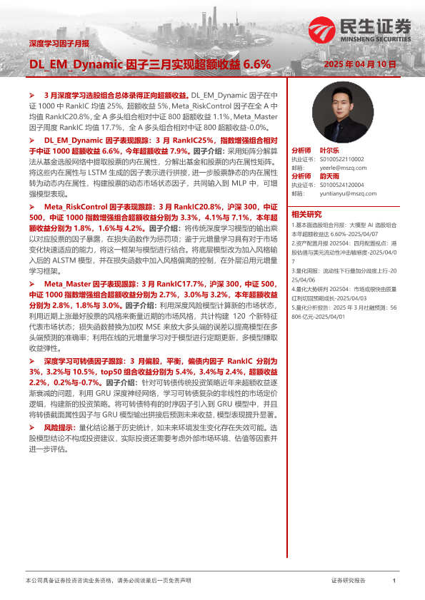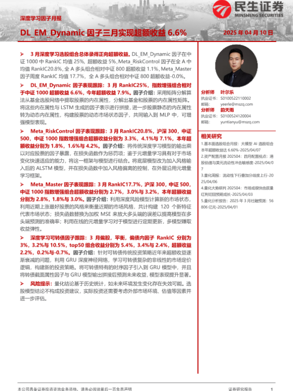【民生证券】【20250410】深度学习因子月报:DL_EM_Dynamic因子三月实现超额收益6.6%-24页