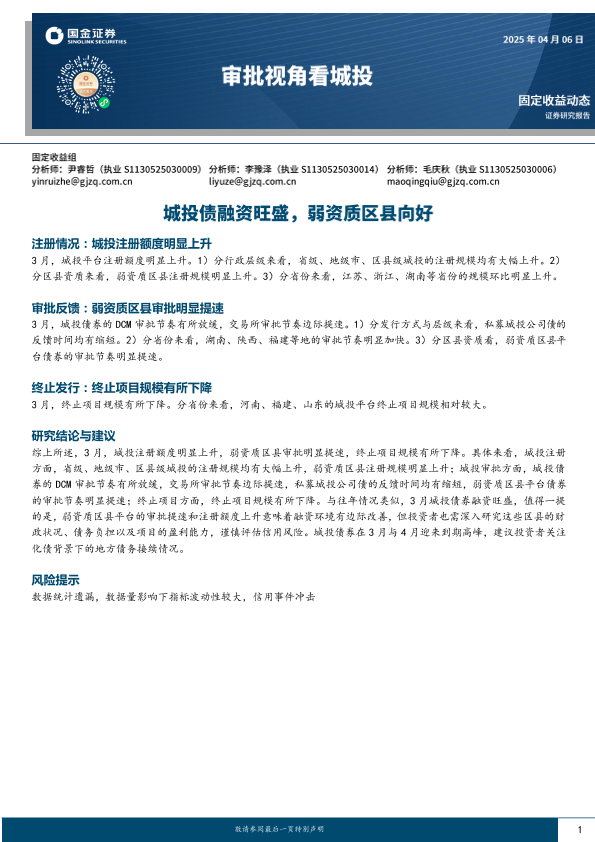 【国金证券】【20250406】审批视角看城投:城投债融资旺盛,弱资质区县向好-11页