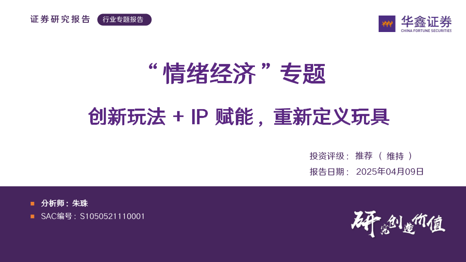 【华鑫证券】【20250409】玩具行业“情绪经济”专题:创新玩法+IP赋能,重新定义玩具-62页