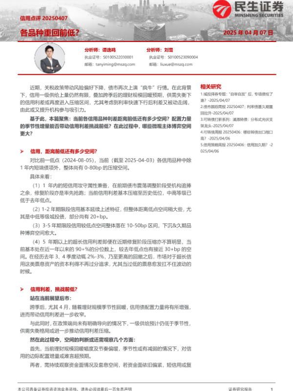 信用利差 信用点评 债券市场 市场分析 理财规模