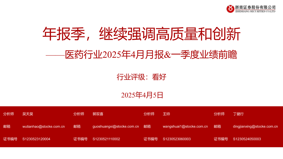 【浙商证券】【20250405】医药行业2025年4月月报&一季度业绩前瞻-33页