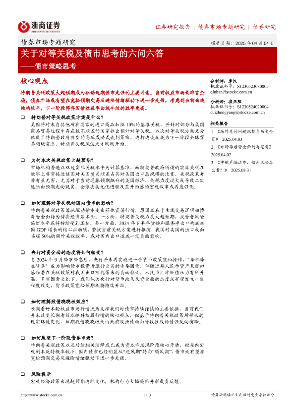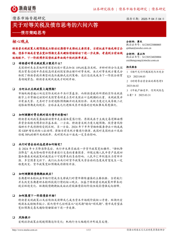 【浙商证券】【20250404】关于对等关税及债市思考的六问六答-13页