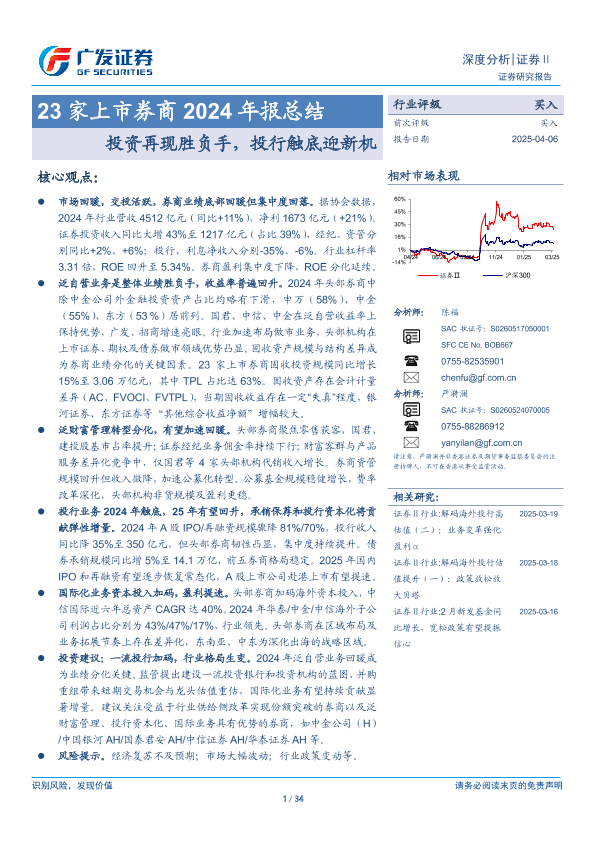 【广发证券】【20250406】证券Ⅱ行业23家上市券商2024年报总结:投资再现胜负手,投行触底迎新-34页