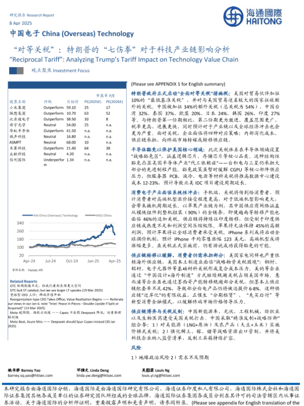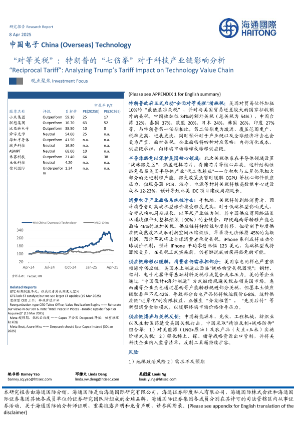 【海通国际】【20250408】中国电子行业“对等关税”:特朗普的“七伤拳”对于科技产业链影响分析-22页