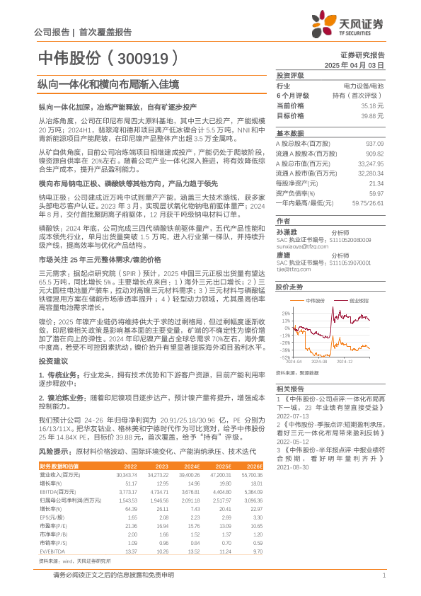 【天风证券】【20250403】中伟股份纵向一体化和横向布局渐入佳境-19页