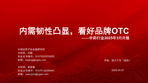 【长城证券】【20250407】中药行业2025年3月月报:内需韧性凸显,看好品牌OTC-21页
