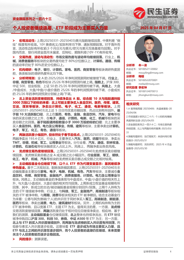 【民生证券】【20250407】资金跟踪系列之一百六十三:个人投资者继续退潮,ETF阶段成为主要买入力量-39页