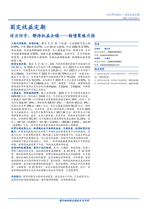 【国盛证券】【20250409】转债策略月报:适当防守,静待权益企稳-11页