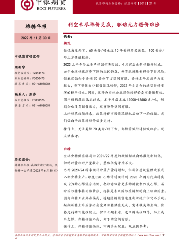 【中银期货】【20221130】棉糖年报:利空未尽棉价见底,驱动无力糖价难涨-17页
