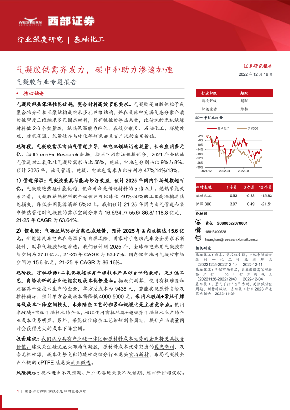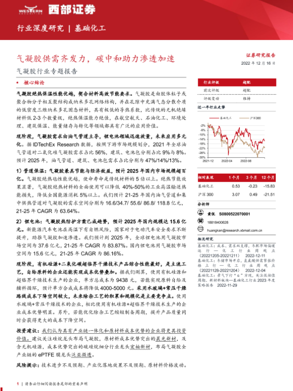 【西部证券】【20221216】气凝胶行业专题报告:气凝胶供需齐发力,碳中和助力渗透加速-19页