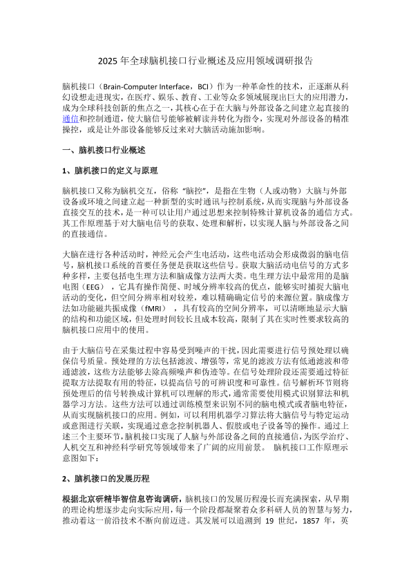 【北京研精毕智信息咨询】【2025】2025年全球脑机接口行业概述及应用领域调研报告-11页