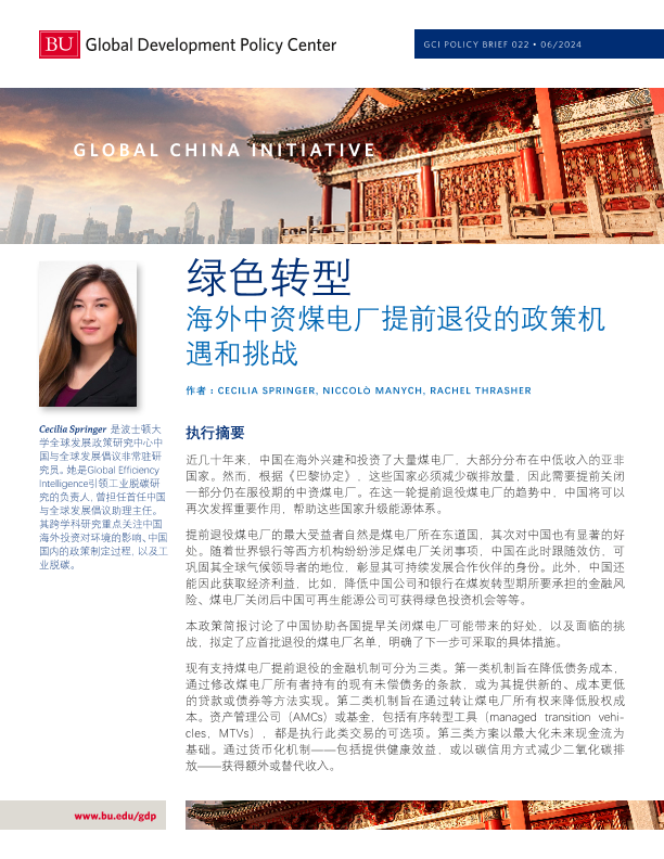 【波士顿大学全球发展政策研究中心】【202406】绿色转型:海外中资煤电厂提前退役的政策机遇和挑战-14页