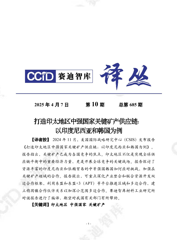【美国国际战略研究中心(CSIS)】【202411】打造印太地区中强国家关键矿产供应链:以印度尼西亚和韩国为例-24页