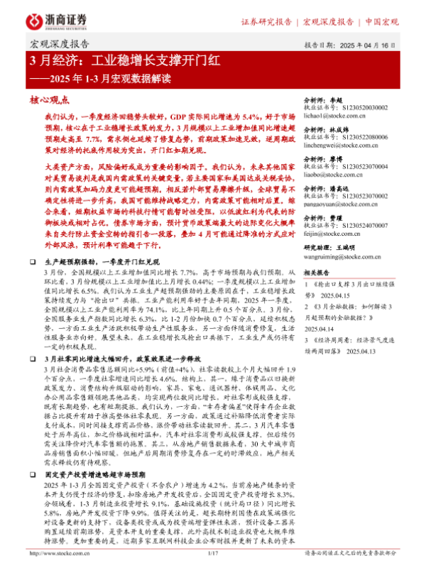 【浙商证券】【20250416】3月经济:工业稳增长支撑开门红-17页