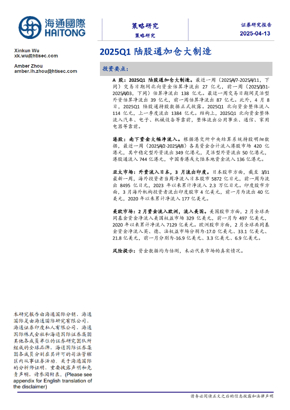 【海通国际】【20250413】2025Q1陆股通加仓大制造-14页