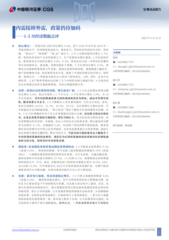 【银河证券】【20240425】1_3月经济数据点评:内需接棒外需,政策仍待加码-13页