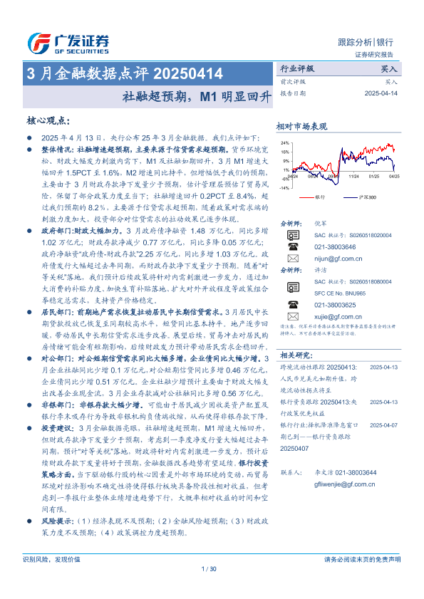 M1回升 信贷需求 社融增速 财政政策 金融数据