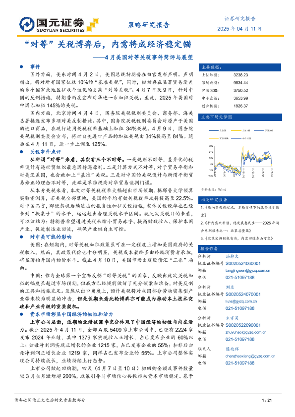 【国元证券】【20250411】4月美国对等关税事件简评与展望:“对等”关税博弈后,内需将成经济稳定锚-21页