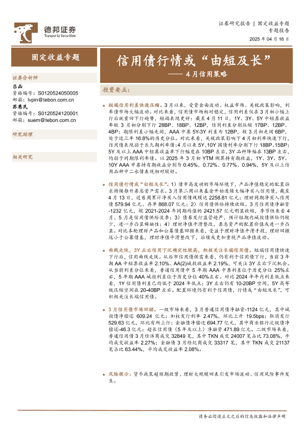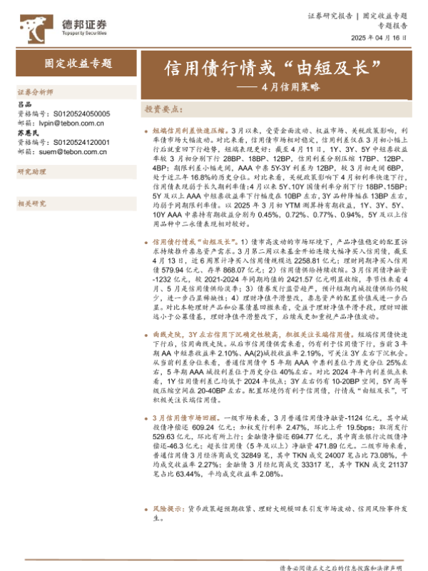 【德邦证券】【20250416】4月信用策略:信用债行情或“由短及长”-15页
