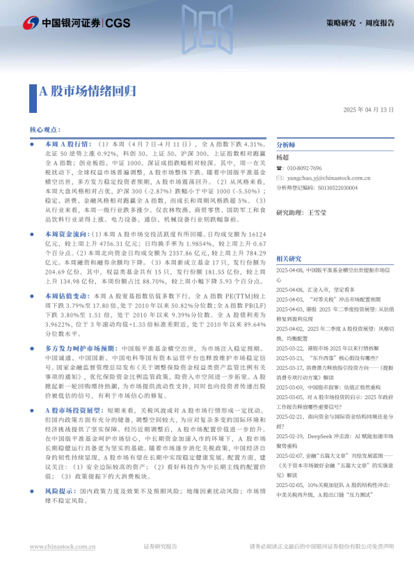 【银河证券】【20250413】A股市场情绪回归-11页