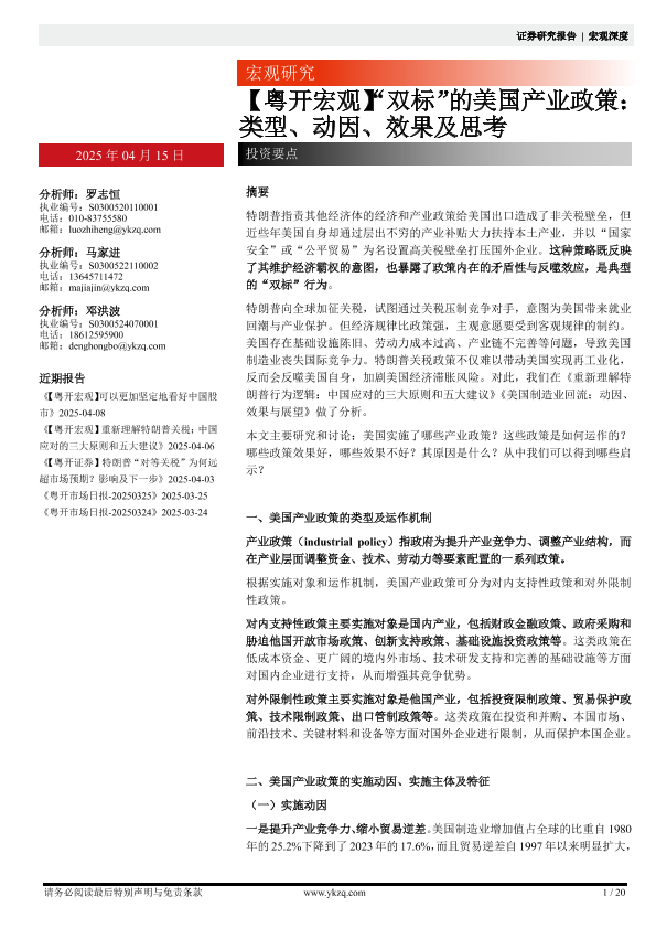 【粤开证券】【20250415】“双标”的美国产业政策:类型、动因、效果及思考-20页