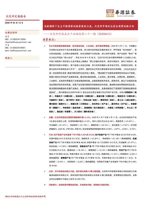 【华源证券】【20250413】北交所科技成长产业跟踪第二十一期:关税博弈下自主可控国家战略重要性凸显,北交所市场定位符合国家战略方向-15页