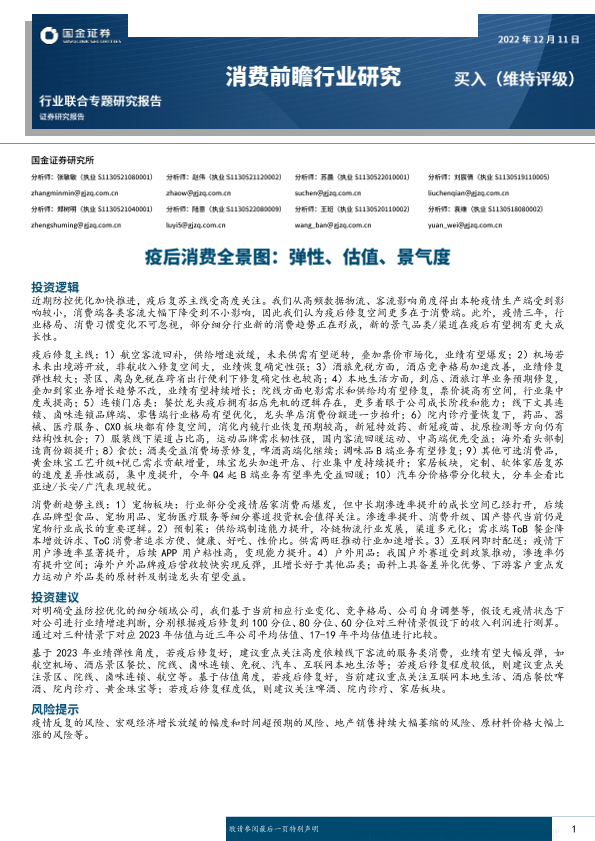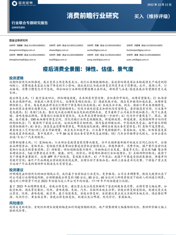 【国金证券】【20221211】消费前瞻行业研究:疫后消费全景图,弹性、估值、景气度-41页