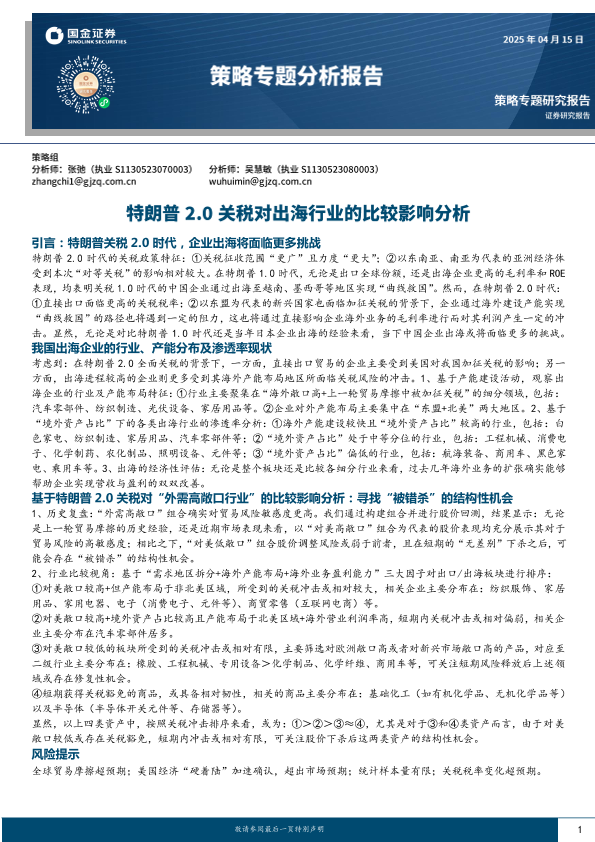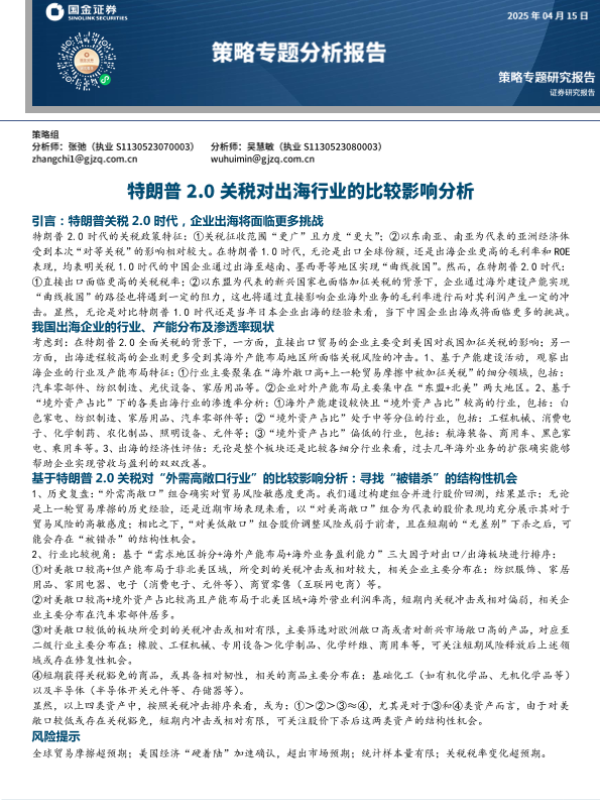 【国金证券】【20250415】策略专题分析报告:特朗普2.0关税对出海行业的比较影响分析-17页