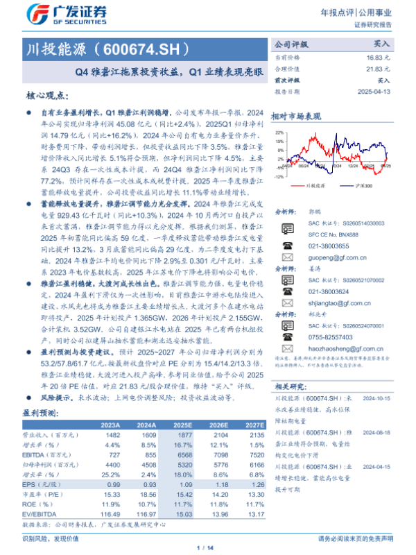 【广发证券】【20250413】Q4雅砻江拖累投资收益,Q1业绩表现亮眼-14页