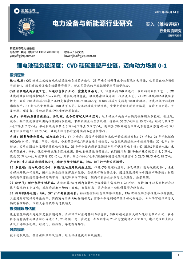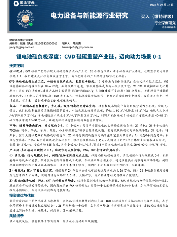 【国金证券】【20250414】电力设备与新能源行业锂电池硅负极深度:CVD硅碳重塑产业链,迈向动力场景-26页