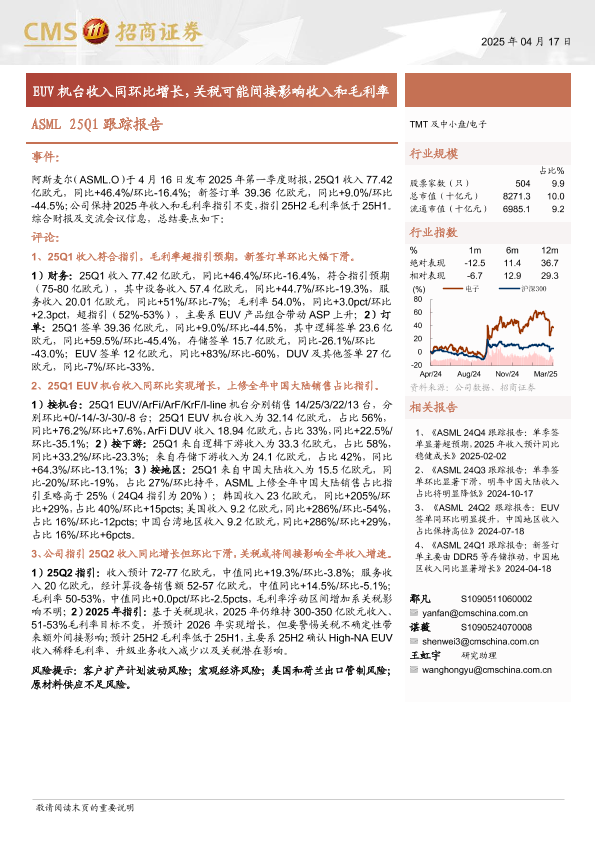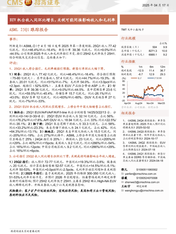 【海通证券】【20250417】电子行业ASML 25Q1跟踪报告-12页