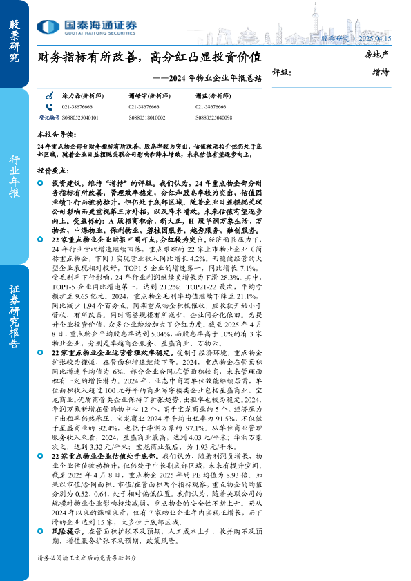 【国泰海通证券】【20250415】房地产行业2024年物业企业年报总结-13页