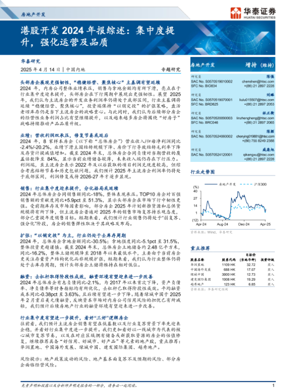 【华泰证券】【202404】房地产开发行业港股开发2024年报综述:集中度提升,强化运营及品质-20页