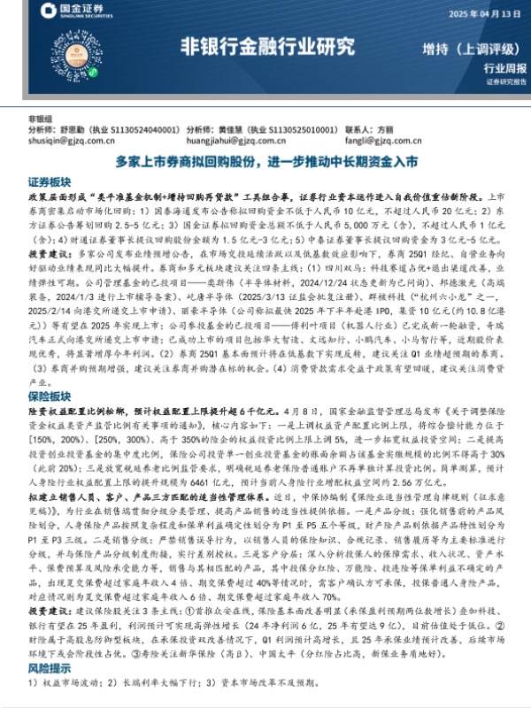 【国金证券】【202304】非银行金融行业研究:多家上市券商拟回购股份,进一步推动中长期资金入市-10页