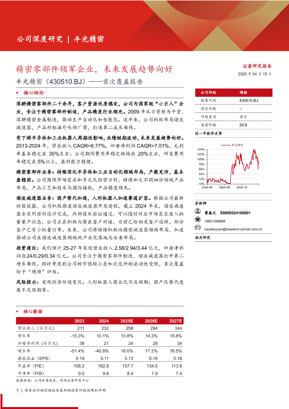 【西部证券】【20250415】丰光精密(430510)首次覆盖报告:精密零部件领军企业,未来发展趋势向好-25页