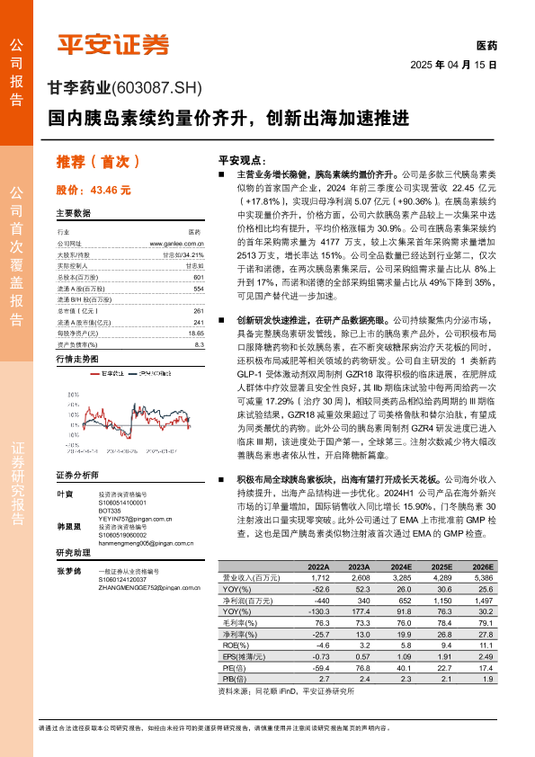 【平安证券】【20250415】甘李药业(603087)国内胰岛素续约量价齐升,创新出海加速推进-17页