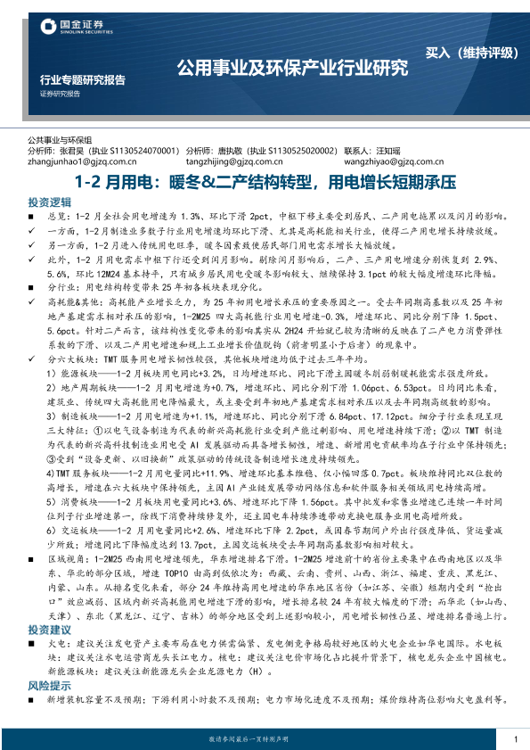 【国金证券】【20250411】1-2月用电:暖冬&二产结构转型,用电增长短期承压-17页